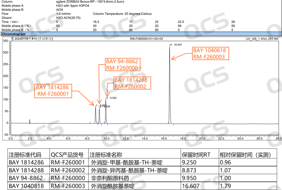 然而對(duì)于具有手性中心的藥物分子,其手性雜質(zhì)的研究必定是無(wú)法避免的問(wèn)題。QCS研發(fā)中心提供的貨號(hào)為:RM-F260000、RM-F260004、RM-F260011三個(gè)產(chǎn)品,分別對(duì)應(yīng)為(S)-非奈利酮標(biāo)樣(API,光學(xué)純)、(R)-非奈利酮標(biāo)樣(API對(duì)映異構(gòu)體,光學(xué)純)和消旋體非奈利酮標(biāo)樣(外消旋體)。以上三個(gè)產(chǎn)品可以幫助各位研究人員在進(jìn)行手性開(kāi)發(fā)和檢測(cè)工作中作為對(duì)照使用。