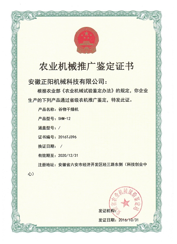 農(nóng)業(yè)機械推廣鑒定證書