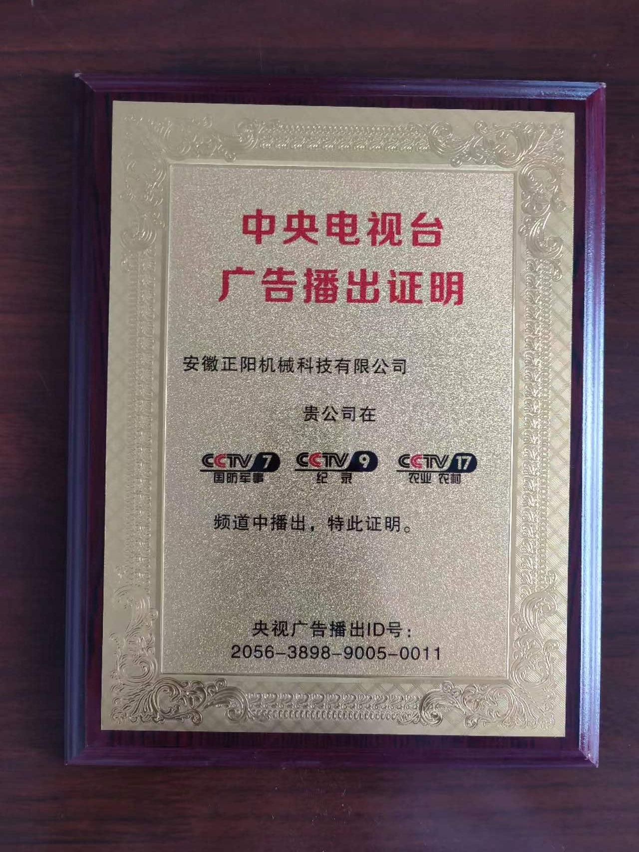 中央電視臺(tái)廣告播出證明